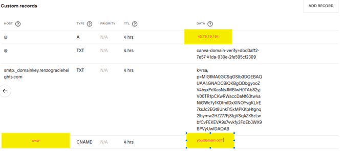 Aレコードを追加した後、「www」サブドメイン用のCNAMEレコードも追加してください。これは、弊社経由で無料のSSL証明書を追加できるようにするためです(これにより、安全なサイトとして表示されます)。